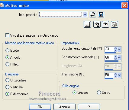 Effetti>Effetti di immagine>Motivo unico, con i settaggi standard.