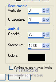 Effetti>Effetti 3D>Sfalsa ombra, colore nero, ombra su nuovo livello non selezionato.