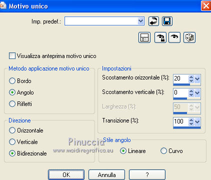 Effetti>Effetti di immagine>Motivo unico, con i settaggi precedenti, ma orizzontale selezionato.