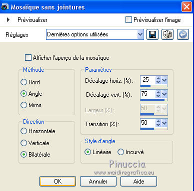 32. Effets>Effets d'image>Mosaïque sans jointures, par défaut.