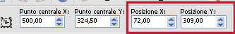 e imposta Posizione X: 72,00 e Posizione Y: 309,00.