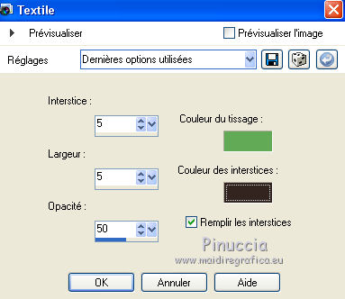 Couleur du tissage: premier plan - couleur des interstices: couleur d'arrière plan.