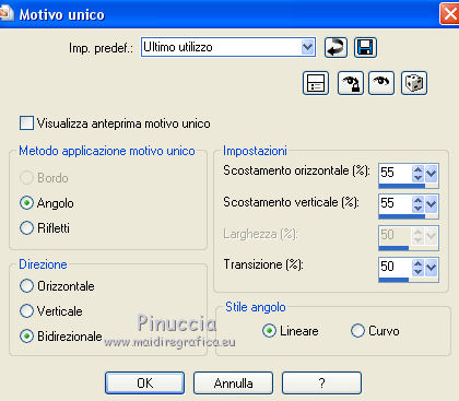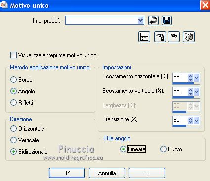 17. Effetti>Effetti di immagine>Motivo unico, con i settaggi precedenti, ma Orizzontale selezionato.