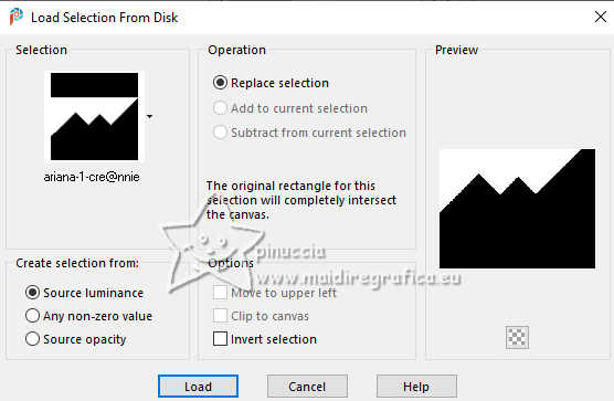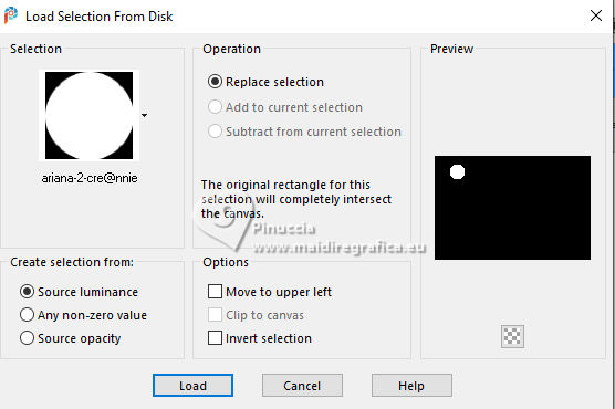 11. Selections>Load/Save Selection>Load Selection from Disk.