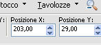 mantieni Posizione x: 203,00 e imposta Posizione Y: 29,00.