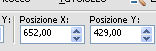 Imposta Posizione X: 652,00 e Posizione Y: 429,00.