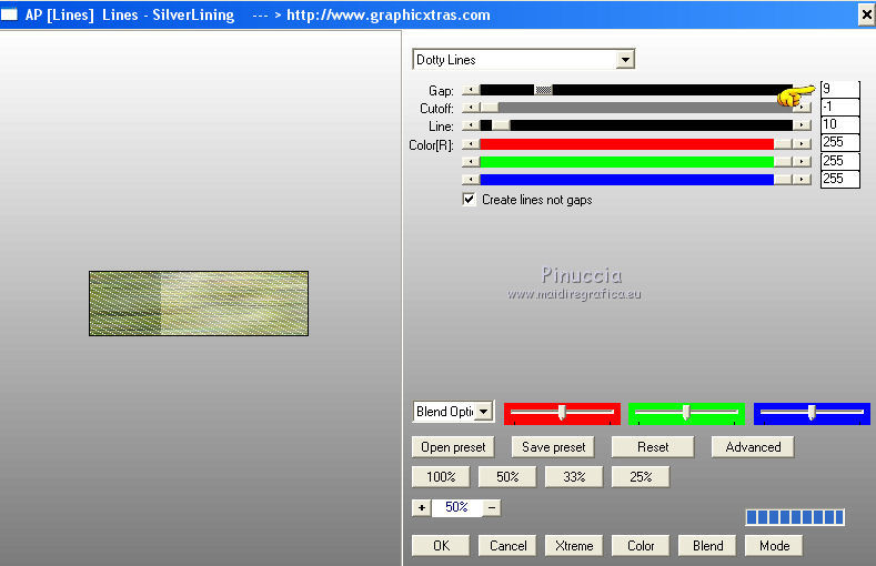 14. Effetti>Plugins>AP [Lines] - Lines SilverLining - cambia gap con 9 e ok.