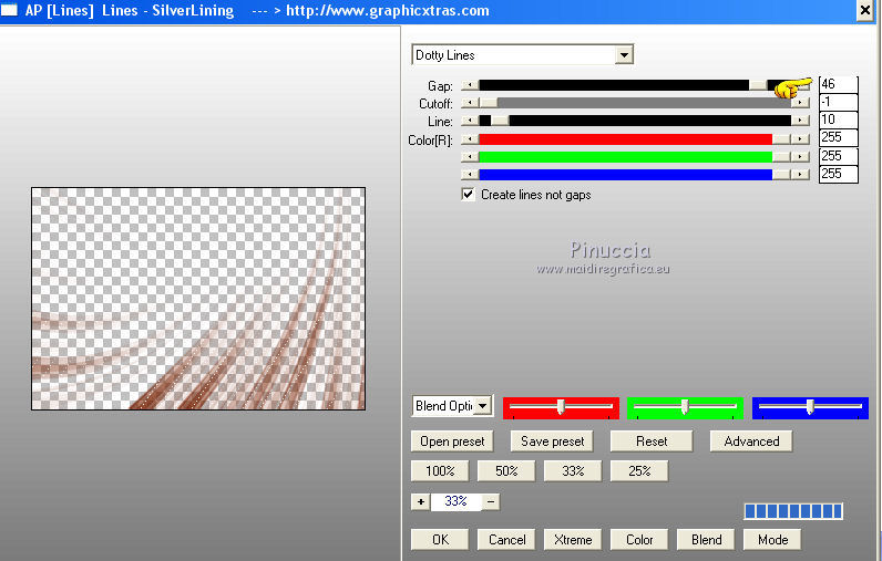 36. Effetti>Plugins>AP [Lines] - Lines SilverLining, cambia gap con 46 e ok.