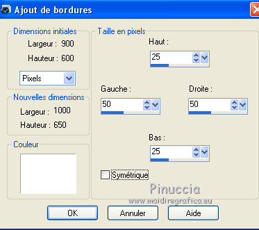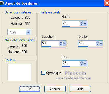 6. Image>Ajouter des bordures, symétrique décoché, couleur d'arrière plan.