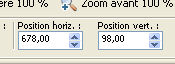 Placer Position horiz.: 678,00 et Position vert.: 98,00.
