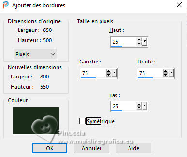 Image>Ajouter des bordures, symétrique décoché, couleur d'arrière plan.