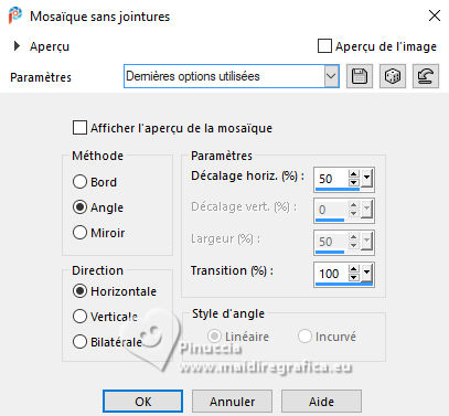 4. Effets>Effets d'image>Mosaïque sans jointures, par défaut.