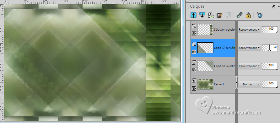 38. Placer le calque en mode Recouvrement et réduire l'opacité à 50%.