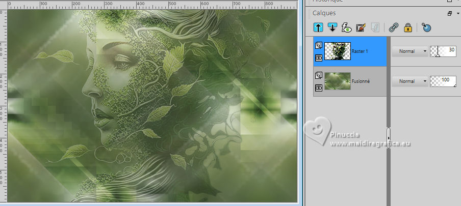 Placer le calque en mode Luminance et réduire l'opacité à 30%.