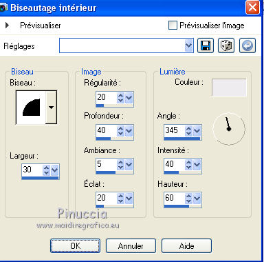 54. Effets>Effets 3D>Biseautage intérieur, comme précédemment.