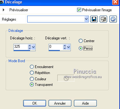 et placer Position horiz.: 0,00 et Position vert.: 163,00.