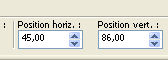 Placer Position horiz.: 45,00 et Position vert.: 86,00.