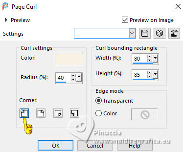 Effects>Image Effects>Page Curl, foreground color.