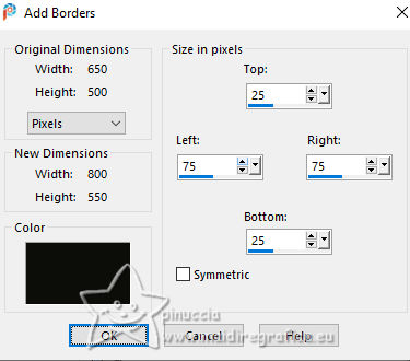Image>Add borders, symmetric not checked, background color.
