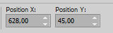 Set Position X: 628,00 and Position Y: 45,00.