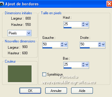Image>Ajouter des bordures, symétrique décoché - couleur d'arrière plan.