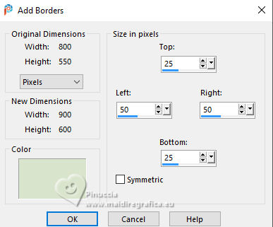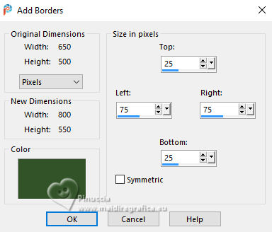57. Image>Add borders, 25 pixels, symmetric, foreground color.