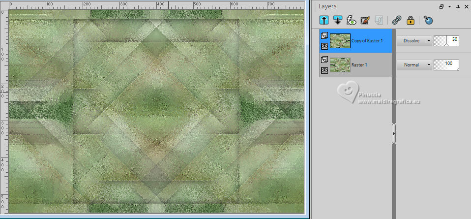 Change the Blend Mode of this layer to Dissolve and reduce the opacity to 50%.