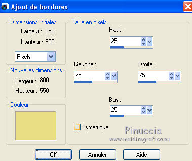 Image>Ajouter des bordures, 25 pixels, symétrique, première couleur d'avant plan #e9de83.