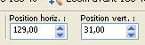 Placer Position horiz.: 129,00 et Position vert.: 31,00.