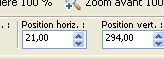et placer Position horiz.: 21,00 et Position vert.: 294,00.