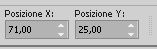 e imposta Posizione X: 71,00 e Posizione Y: 25,00.