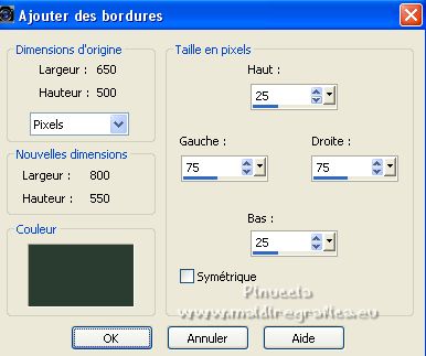 Image>Ajouter des bordures, symétrique décoché, couleur d'arrière plan.