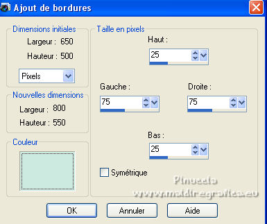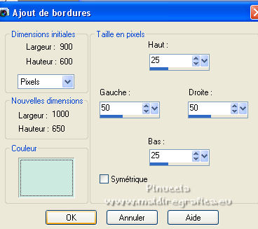 Image>Ajouter des bordures, symétrique décoché, couleur d'arrière plan.