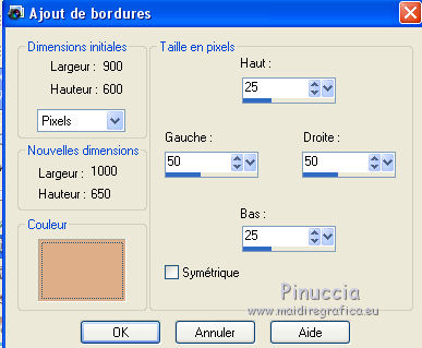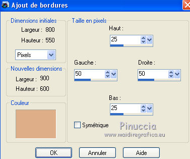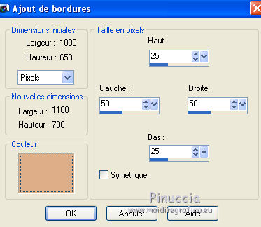 6. Image>Ajouter des bordures, symétrique décoché, couleur d'arrière plan.