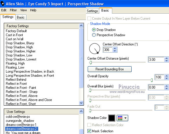 40. Effets>Modules Externes>Alien Skin Eye Candy 5 Impact - Perspective Shadow.