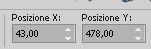 Imposta Posizione X: 43,00 e Posizione Y: 478,00.