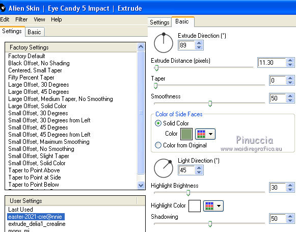40. Effets>Modules Externes>Alien Skin Eye Candy 5 Impact - Extrude