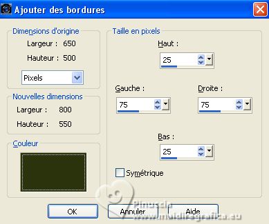 Image>Ajouter des bordures, symétrique décoché, couleur d'arrière plan.