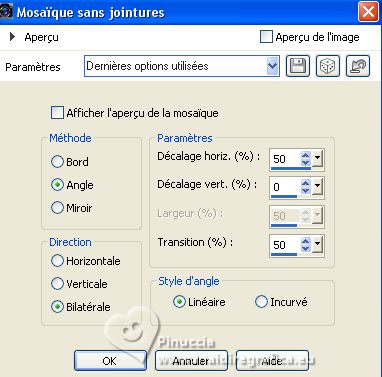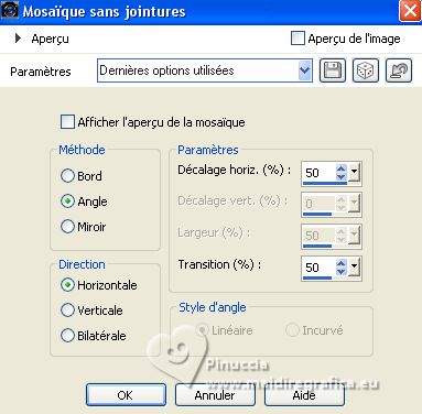 4. Effets>Effets d'image>Mosaïque sans jointures, par défaut.