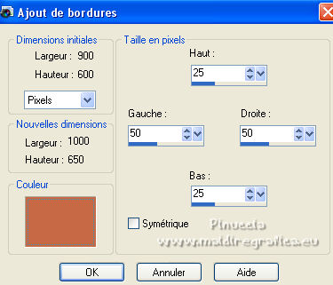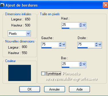 Image>Ajouter des bordures, symétrique décoché, couleur d'arrière plan.
