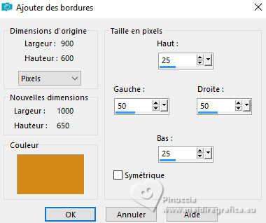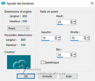 Image>Ajouter des bordures, symétrique décoché, couleur d'arrière plan.