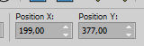 Set Position X: 199,00 and Position Y: 377,00.