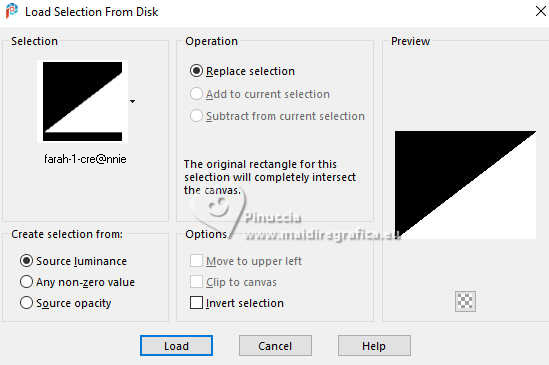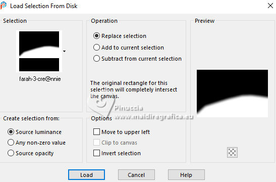 17. Selections>Load/Save Selection>Load Selection from Disk.