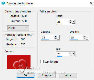Image>Ajouter des bordures, symétrique décoché, couleur d'avant plan.