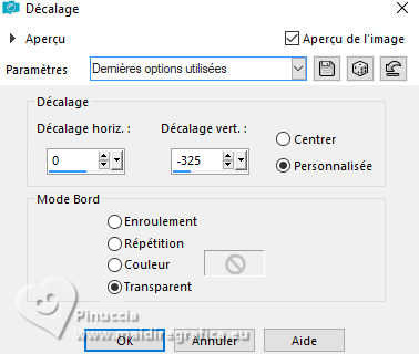 et placer Position horiz.: 376,00 et Position vert.: 16,00.