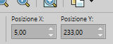 e imposta Posizione X: 5,00 e Posizione Y: 233,00.