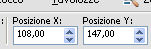 Lascia Posizione X: 108,00 e imposta Posizione Y: 147,00.
