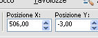 Imposta Posizione X: 506,00 e Posizione Y: -3,00.