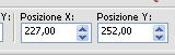 Imposta Posizione X: 227,00 e Posizione Y: 252,00.