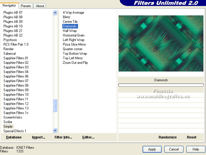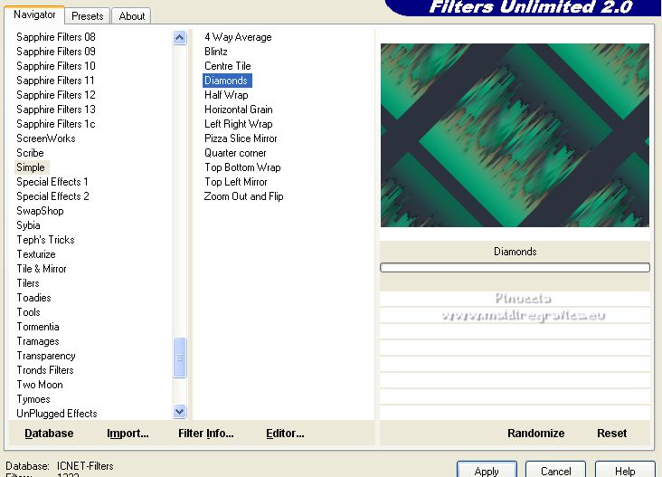 Effetti>Plugins>Filters unlimited 2.0 - Simple - Diamonds.